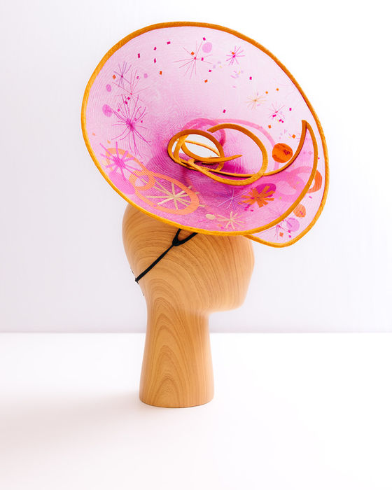 I learned to transform crinoline into a magical fabric in master milliner Lina Stein’s online workshop Crinolation. We turned our fabric into beautiful swirled headpieces. I was inspired by mid-century modern shapes for this piece, but the possibilities are endless. A covered wire headband keeps the headpiece cocked at the perfect angle. This technique can be used in infinite variations.
