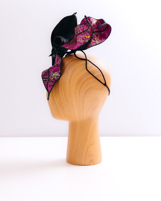 This crown of leaves was created under the expert tutelage of master milliner Lina Stein. Her proprietary technique taught me to make these magnificent dancing leaves. They can be created in unlimited color combinations and can be assembled in a crown or used as an added emblishment to a hat.